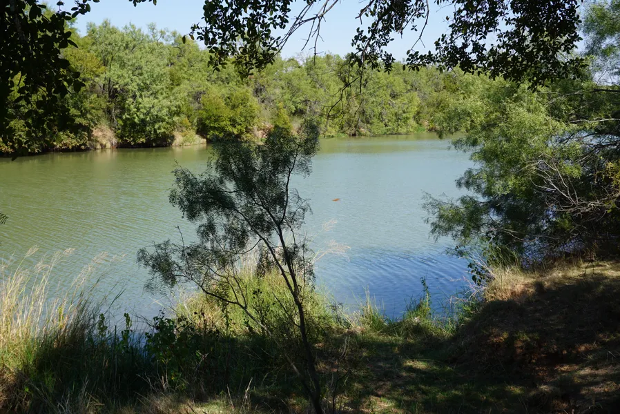 Terrain. The terrain changes dramatically on the property; the south part is fairly level and can be used to grow crops or food plots for game. Then, the north part has gorgeous river frontage. The river is exceptionally wide here, and makes really pretty scenery. There are large elm shade trees on the river bank. With 120 feet of elevation change, there are great views and build sites for your weekend or forever home !
