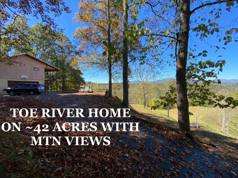 42 ACRES and PANORAMIC VIEWS from the home perched at the top of this property! Dreamy cleared ridges for your furry friends or additional structures. Large porch to sit and enjoy the cool mountain breeze through summer. From river to ridge, cleared to wooded, this property has a bit of everything. Tillable ground along the river, so grow your veggies and then take a dip or do some fly fishing! Views from most windows of the home. Nice open living room/kitchen/dining space with a wood fireplace. Split bedroom floor plan. Master bed has a large bath with both shower and tub. 2 additional unfinished/unheated rooms in the basement and plumbed for a half bath. Paved driveway. Large one car garage with laundry & chimney for wood stove. Also an additional 320 sq ft attached workshop on the opposite end of the house. Nice interior roads for ATV. Tons of space for projects & exploring yet only a 10 minute drive to Burnsville for groceries, shopping, & restaurants. Really an amazing property & worth a look!