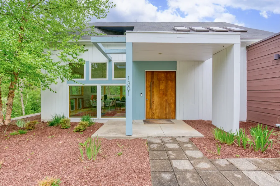This remarkable modern home in Goshen on 6+ acres is the culmination of nearly two decades of collaboration with acclaimed architect David Biagi. Flooded with natural light and grounded in purpose, it harmoniously balances clean modern lines with the warmth of natural wood. Equipped with geothermal heating and cooling, solar panels, and meticulously selected fixtures, the home minimizes environmental impact while reducing monthly utility costs. Every inch was thoughtfully curated, from layout to lighting, to enhance daily life and reflect a deep respect for design, family, and the land itself. The first-floor living spaces offer an open-concept design that promotes easy living. Despite the vast vaulted ceilings, each area feels comfortable and inviting, creating an ideal setting for both relaxation and entertaining. The primary suite serves as a treasured retreat, featuring direct access to a serene deck with peaceful views of nature. The spa-like primary bathroom boasts dual sinks, a soaking tub, a large glass shower, and an expansive walk-in closet. Two additional bedrooms, a full bathroom, a home office, and a half bath complete the main level, providing ample space for family and guests. Descend to the walkout lower level to discover a versatile and highly functional layout. This space includes an additional family room, a home gym, a fourth bedroom, a full bathroom, and generous storage options, catering to a variety of lifestyle needs. The expansive acreage serves as a private oasis, offering distinct outdoor entertaining spaces and stunning views of the picturesque surroundings. Enjoy the calming sounds of the nearby stream or spend leisurely afternoons fishing in the on-site pond. This is your opportunity to own a private, custom-built home brought to life in one of Oldham County's most serene settings.