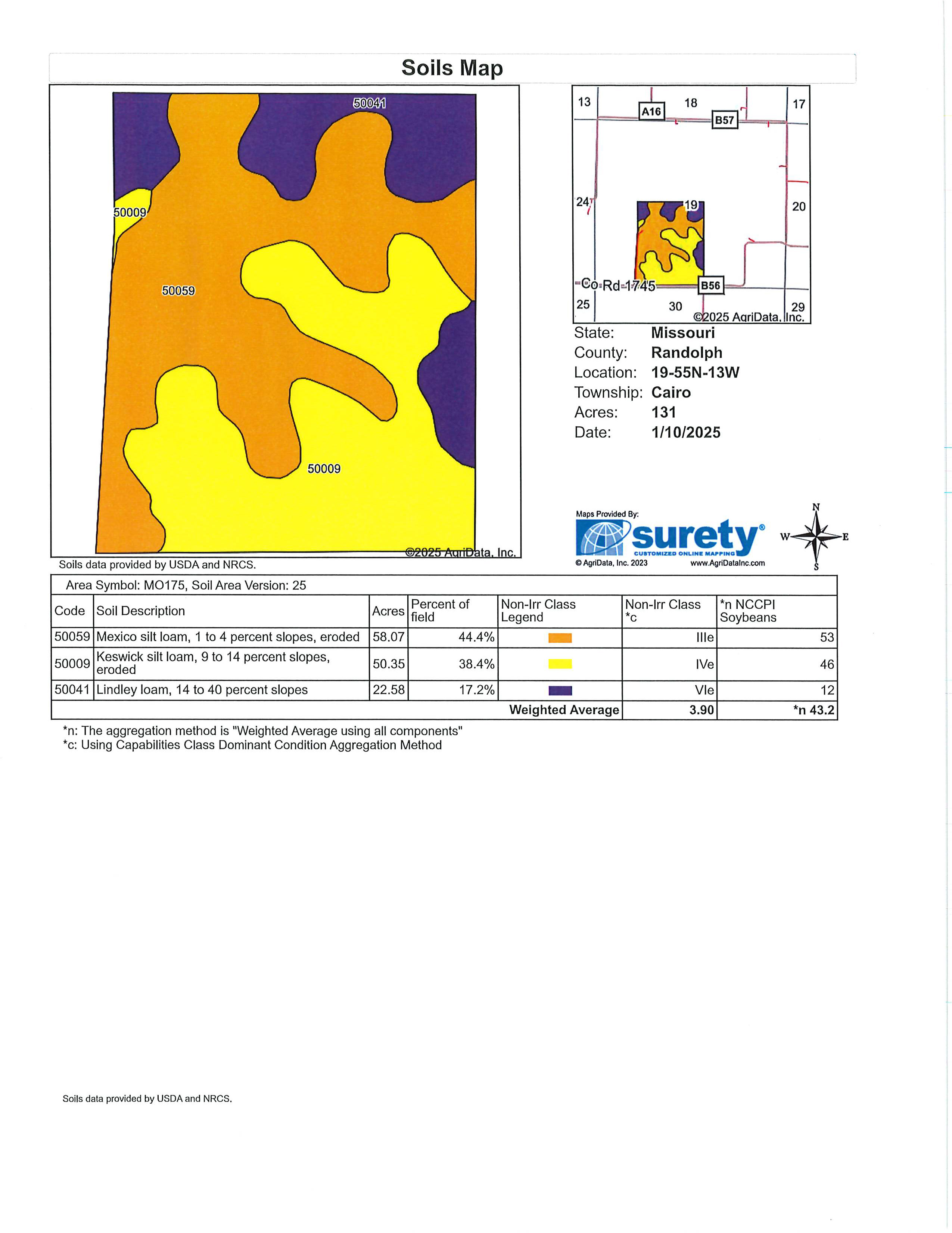 TRACT 1: 105.3 Surveyed Acres with 59.23 FSA Open Acres Mexico & Keswick Soils - Currently Utilized for Row Crop Farming Nice Building Site or Sites (Water & Electric Close by) Excellent Farm Access Bordering Co. Rd. 1745 Land Lays Level to Gently Rolling Multiple Prime Food Plot Locations Ideal for Attracting Deer, Turkeys with Small Creek & Pond for Water Source - Farm is Ready for New Owners with no Hunting or Farming Leases in Place!!