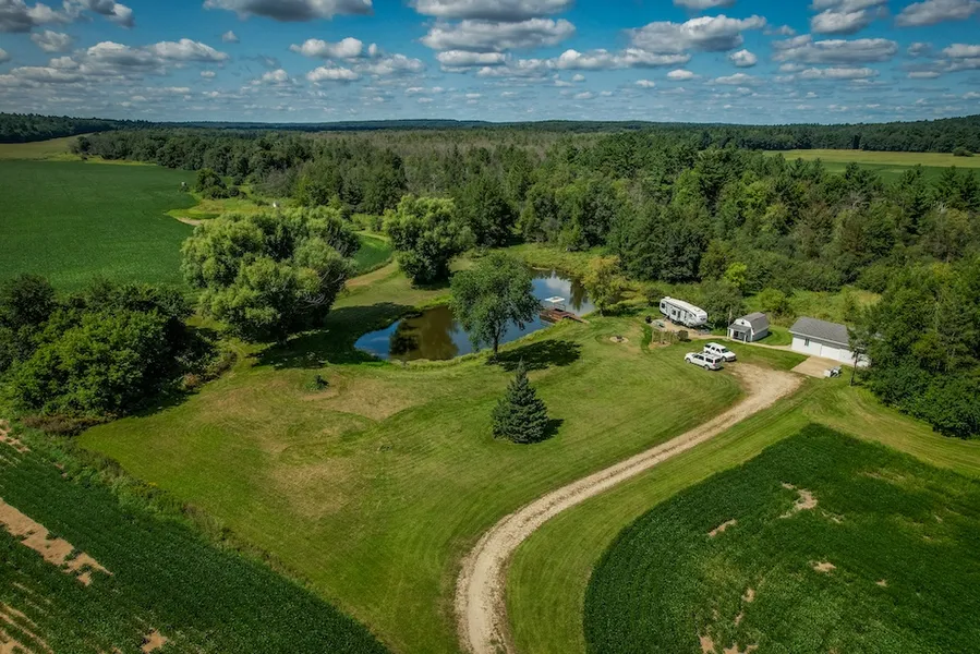 This 131-acre property in Waupaca County, Wisconsin, offers a combination of income-producing farmland, wooded recreational acreage, and established improvements for outdoor living. Of the total acreage, approximately 70 acres are leased as tillable ground, generating $8,000 annually in rental income. The balance is wooded, featuring a meandering stream that runs through the property, and several ATV bridges for access. A central feature of the property is the half-acre pond with a floating dock located near the campsite. The campsite includes a storage garage with a concrete floor and power, a cabin, and a concrete camper pad. Several additional camper hookups are also in place around the pond, creating a functional base camp for seasonal stays, recreational activities, or as a gathering location for guests.The tillable ground provides annual income with its quality soils and crop history. The wooded portions create a natural habitat and recreational opportunities and hunting access. The stream running through the property adds to the diversity of the terrain and is crossed by several bridges, which provide reliable access. Improvements on the property make it adaptable for multiple uses. The small cabin is perfect for anyone looking to stay for hunting season or a weekend getaway. The storage garage provides secure space for equipment and supplies when you are away, while the camper pad and hookups make it possible to host several campers at the same time. Top that off with the stunning pond on the property, and you are set for quiet sunsets and years of fun to come.The property is located in Waupaca County, a region known for its blend of agriculture and recreational land. Several communities are nearby, providing access to services and amenities while the property itself retains its rural character. Scandinavia is just minutes from the property, giving you easy access to restaurants. To the south is Waupaca, with all the needed amenities you would need for daily life. You could easily make this property your dream home site with its close proximity to multiple towns.With its mix of income-producing tillable acres, wooded recreational land, and the cabin, garage, pond, and camper hookups, this property supports a wide range of uses. Call today to schedule your private showing!