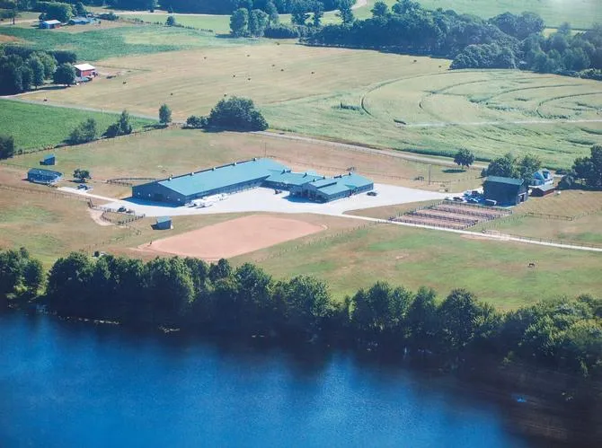 SELLER FINANCE AVAILABLE! Exceptional Equestrian estate property on approximately 131 acres surrounding a beautiful clear water 30 acre lake. Property includes 3 residences, the main residence, a farm manager's house, and a caretaker's house. The main residence has a picturesque location on the lake with gardens and spacious porches on the front and back. It is a ranch-style with 10 rooms totaling 2,152 sq. ft. (included a closed-in sun porch) on the main level. In addition the basement has a finished recreation/family room with full bath totally 1337 sf. Outbuildings include an Equestrian Training Facility, a foaling barn, a 5 stall barn with office and apartment upstairs, several equipment storage buildings, and numerous equestrian shelters in the pastures. The Equestrian Training Facility is a serious horsemen's dream. It has a 300' by 100' heated indoor riding arena; a multi-horse g...