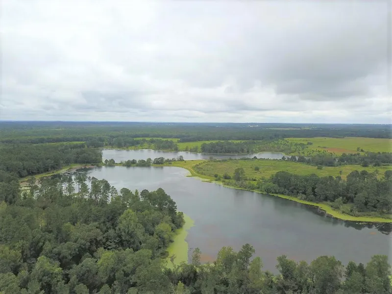 The L and L Lakes Tract has a network of 90+/- acres of lakes historically used as a pay to fish operation. There are several great building sites with beautiful views of the lakes. Along with excellent fishing, the property offers great deer and turkey hunting. Yearly hunting contracts have been in place for decades, and there is also a deer-dressing building, with walk-in freezer and roll-up door. We also jumped a couple covey of quail and a big group of teal while exploring the property.