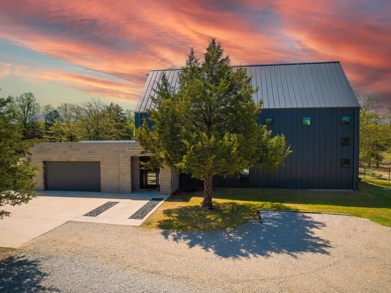 This isnt just a home; its a lifestyle. Introducing a truly one-of-a-kind, builder-owned modern farmhouse infused with striking industrial elements, ideally situated on nearly 9 acres of private, wooded land. Thoughtfully designed and fully customized, this exceptional property offers a unique blend of privacy, comfort, and seamless connection to nature. A fully customized detached guest house offers privacy and comfort with a full bath, kitchenette, laundry and potential income rental. Strategically positioned for passive solar gain and year-round energy efficiency, it embraces eco-conscious living with 2x6 walls, spray foam insulation, and a continuous exterior insulation barrier that keeps the home comfortable in every season while lowering utility costs. Step inside and experience the 33 vaulted living room with dramatic steel and wood beams, exposed ductwork, a sleek gas fireplace, and expansive windows that invite the outside in, flooding the space with natural light and framing the serene views. The well-designed two-story layout includes a main-level sanctuary primary suite with pool, spa & wooded views, a spa-like bathroom featuring body sprays, a bidet, a custom walk-in closet, and a safe room. A mezzanine loft overlooks the living area and connects to a private upper deck, currently serving as an inspiring study and cozy lounge space. The upstairs bedrooms are full of personalitytwo feature delightful lofts with a hidden secret nook for imaginative play or quiet escape; another includes large sliding doors that open to the upper deck for tree-top views and fresh air; and one features a clever Murphy bed, perfect for guests, a home office, or fitness space. Outside, the magic continuesenjoy poolside living with nearly every room offering immersive views of the sparkling water and surrounding woods. The native landscape offers low-maintenance beauty, with a private walking trail, a workshop, generous storage, & covered parking for three vehicles.