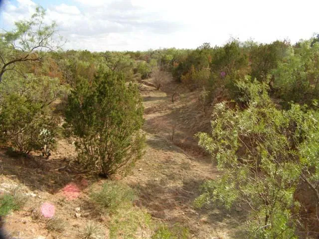This is the perfect get-away place: 134 acres just east of Sweetwater with frontage on the north side of Interstate 20. Sweetwater Creek cuts diagonally across the tract with winding draws and large canyons, providing great scenic features, as well as protection for wildlife. The property is fenced for livestock and has a co-op water meter. The + or - 25 acre abandoned field in the NE corner has recently been cultivated and would make an excellent food plot for game. Thick mesquite and prickly pear provide more cover for wildlife. Competitively priced at $1200 per acre. Call listing agent Dan Huck (325) 370-7654 for more information.
