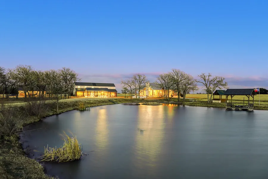 Beautiful 59.7 +/- acres in Carmine--just minutes from Round Top with easy access to 290. This ranch truly has it all! The property features a lovely tree-lined driveway that leads to the stone one story main house. The custom home has soaring beamed ceilings, large great room, fireplace, gourmet kitchen, 3 bedrooms and 3 1/2 baths. With views of one of the beautiful ponds, the back of the home has a fabulous summer kitchen with an outdoor fireplace and seating. The barndominium was updated in 2020 to include 6 bedrooms each with an en suite bath, screened porch, 2 living areas, fireplace, and 2 full kitchens with plenty of room for entertaining. There is an outdoor entertainment pavilion as well as a firepit that seats 12, and an equipment barn completes the improvements. The land is beautiful and features hay meadows in the front and woods in the back--there is even a frisbee golf cou...