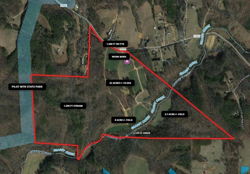 $396,670.00 in Tax Deferment Taxed only on $58,400.00. Will transfer to new owner/s. Storage building approx. 2,00 sq ft. half acre pond. Southern boarder stream and two internal streams. 4,531 feet +/- of water courses. Plenty of water. Maturing timber. View of Pilot Mountain State Park. Joins Pilot Mountain State Park corridor .