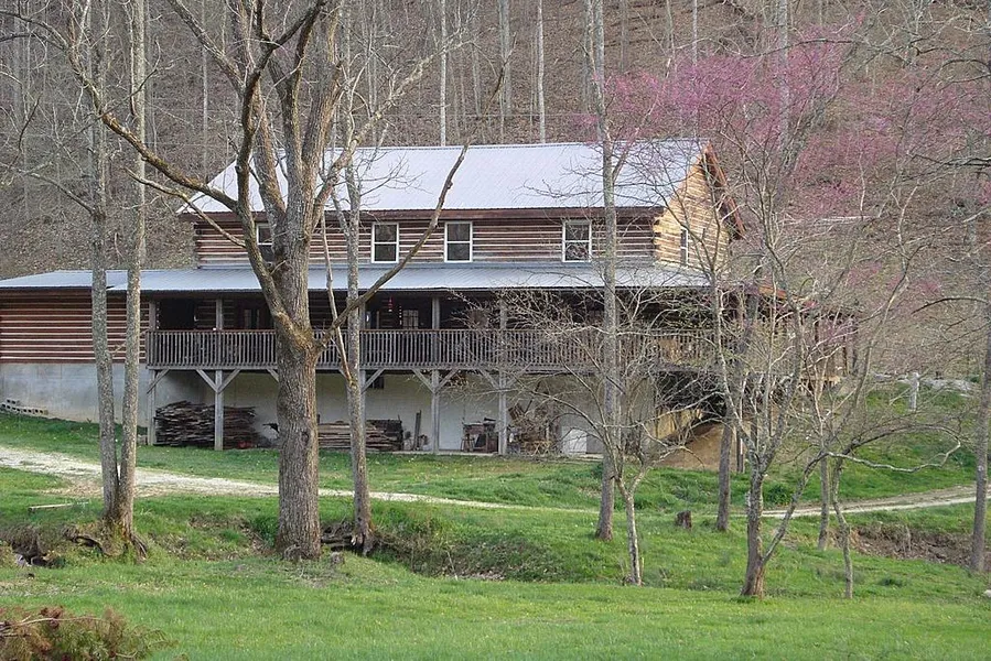 Magnificent log home on 135 acres -/+ with Three Master Bedrooms, first floor Master bedroom that walks out onto the wraparound porch, two master bedrooms upstairs on opposite ends from each other. Hard wood floors, ceramic tile floors throughout. Metal roof, water well, circular driveway. The beautiful wraparound porch on three sides of the home provides beautiful panoramic views of the country. Property is mostly wooded with approximately 10 acres of cleared land, stocked pond, creek, fruit trees, grape vine, and garden spot. Everything you could ask for in a private remote setting. Home is on dead end street and property surrounds both sides of the county road. A cool breeze blows all summer long through the porch and ample windows and doors to allow the fresh air to circulate throughout the house.