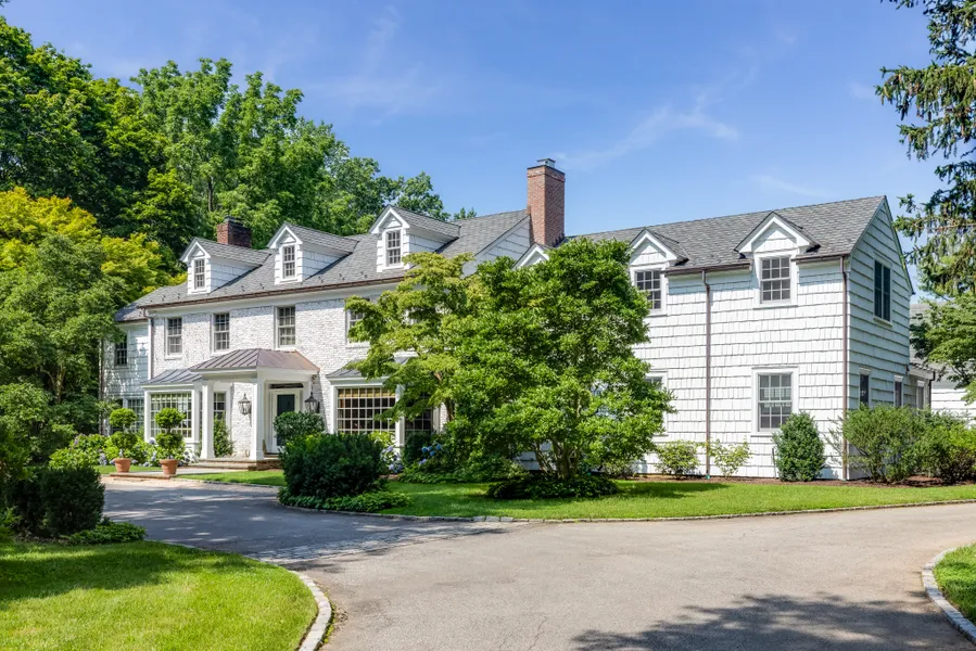 Lattingtown, NY - Just thirty miles east of Manhattan, a quiet private road opens to this gracious completely renovated and expanded six-bedroom Colonial estate featuring a sparkling new in-ground swimming pool and spa with Turkish limestone surround, a two-bedroom carriage house and a four-bay garage. Light-filled living and dining rooms, sunroom, library, wet bar, family room, office, unparalleled new kitchen with eyebrow windows in cathedral ceiling. Luxurious primary suites on both main and second levels. Windows and doors open the interiors to the captivating gardens where hardscape blends harmoniously with verdant lawns and specimen plantings. Generator and automatic pool cover. Lattingtown Village beach and Glen Cove Golf Club privileges (fees). Set on three manicured acres, Merryfield offers a lifestyle of refined and gracious living. A Masterpiece Collection Listing