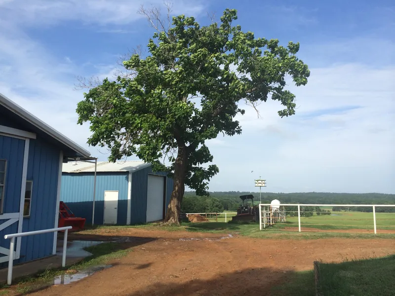 The old Loggins Horse Ranch! 3 minutes from Loop 49 and S. Broadway! Enter on to property at the 546 ft peak and have a stunning panoramic view of the acreage and creek below, looking at some of the best coastal bermuda hay pasture around Tyler. There are two small 1-2 acre stock ponds built over locations marked as springs on old maps. They eventually feed into Shaekleford Creek which runs from north to south through the bottom part of the property. There is a small section along the creek in flood plain, and an old producing well with storage tanks but no large pump jack. There are 4 paddocks for horses to be let outside when the horses are in 1 of the 10 stalls of the 3,900 sf stables. Stables include a tack room, built in office, bathroom, feed room, and wash room. The riding arena is located next to the stables and there is ample parking for numerous horse trailers at the entrance. Pipe and cable fencing marks paddocks and property outlines in places, with barbed wire around the perimeter.