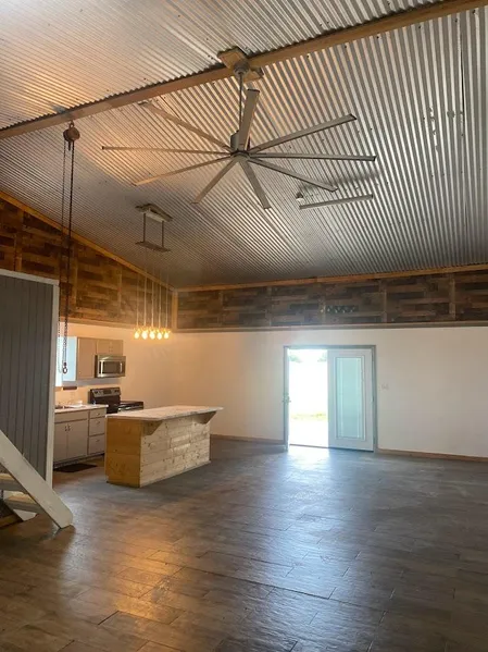 Charming studio barndominium on 9 acres along Stewards Mill Road. This property features 1,000 sqft living area, 1,000 sqft shop on slab, covered parking, and a 40' x 50' dog pen. Another 112' x 56' pen with shed offers many possibilities. Property is completely fenced with a gated entrance. Enjoy the peaceful setting just minutes away from town. Ideal for those seeking a unique blend of country living and modern amenities.