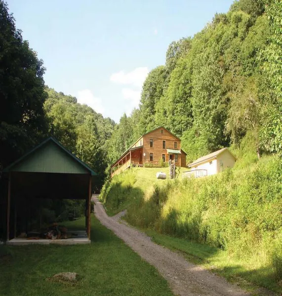 Built in 1997 for retreats and designed for future expansion, this well constructed log lodge features natural wood trunks, 8 x 12 feet with threaded rods for strength-- and stone with plenty of open space for congregating and eating. A large wrap- around porch overlooks the stream and wildlife and water are the only sights and sounds. Original plans included the addition of a deck and pool and theres much upside potential for further growth/expansion for the new owner. For example, the septic system was orginially designed to accommodate 30 campsites in addition to the lodge; its a special T-block system. The lodges water supply is spring fed to a 1,000 cistern and water rights will be retained upon sale.