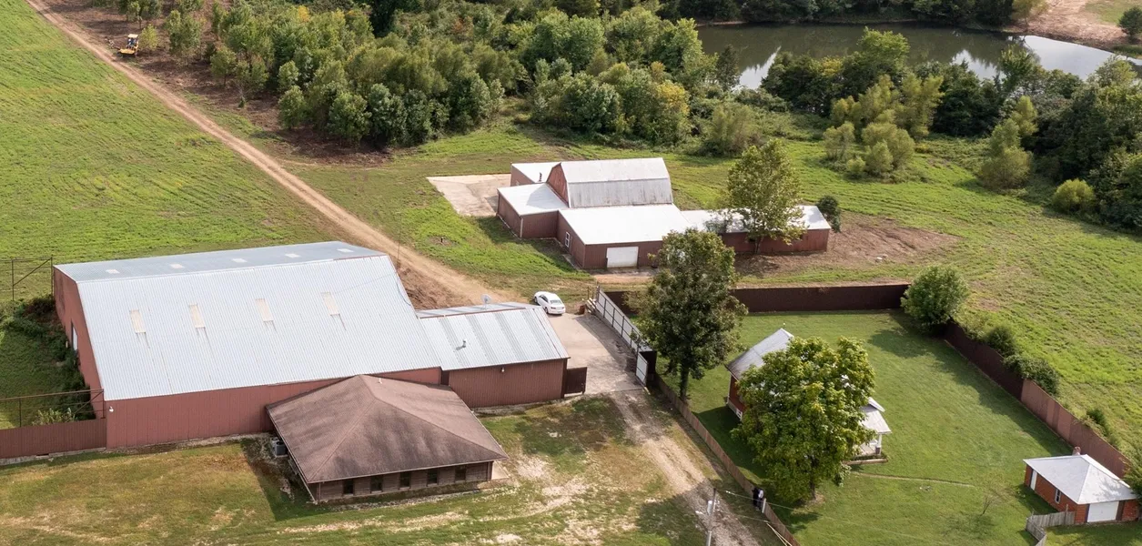 13,600 sf Office/Warehouse - Warehouse has full steel racking and partial mezzanine. 14 +/- acres for $450,000 suitable for business, service or repair center, storage for cars/boats/RVs, dealership, and more. 6 inches of gravel on lot behind and east of warehouse for car, trailer or tractor parking. Or, 114 +/- acres, 85% timber with pond/lake site for $490,000. Or, 3BD/1BA house, 6,742sf Barn/Shop and partial pond, 9 +/- acres for $148,000. Shared fishing lake. Buildings share commercial septic and well. Back of property has pristine timber ideal for dear and turkey. The house can serve as office or residence.