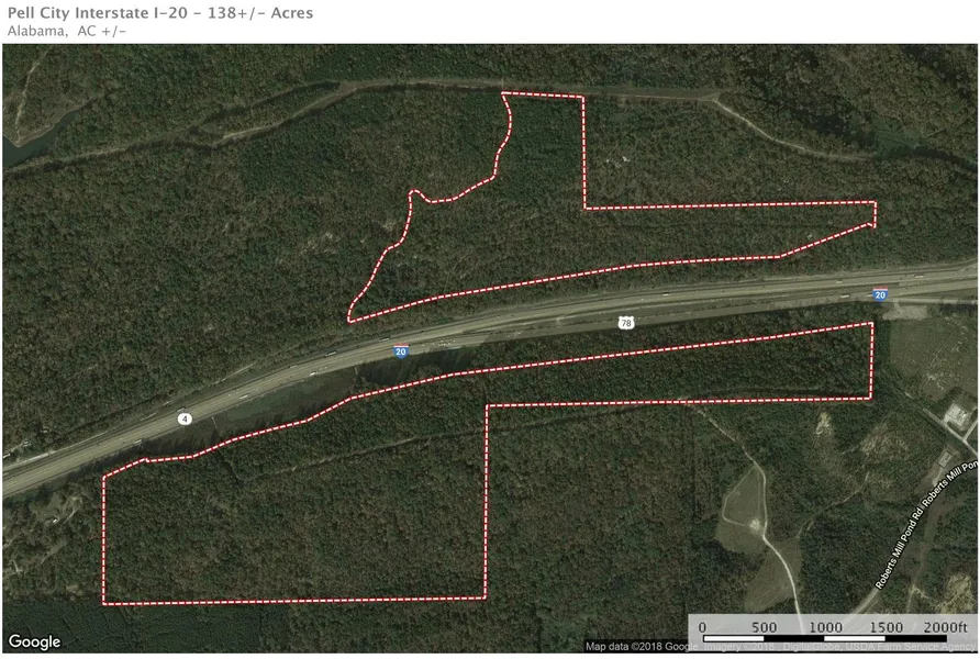 138 Acres divided by Interstate I-20. Property offers 5,000 Ft of Visibility on the South side of I-20 and 3,000 Ft. on the North side of I-20. You have 30 ft. easement access for the south property off Roberts Mill Pond Road. Both sides would be perfect for Bill Boards. The South side offers multiple home sites with Views and Quick Access to interstate. North property would be fine for recreational opportunities.