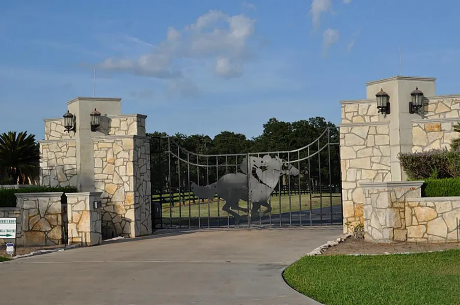 Rafter A Ranch offers rolling hills, emerald pastures, 2 large lakes with fishing piers, 14 stall barn, lighted roping arena, four board fencing, numerous paddocks, beautiful treed private drive. Stone home with 1,500 Sq. Ft of lovely outdoor covered porches, French doors, custom touches.. Additional 2 bedrooms in separate guest house. Hay production produces income. A special ranch offering less than an hour from Houston.