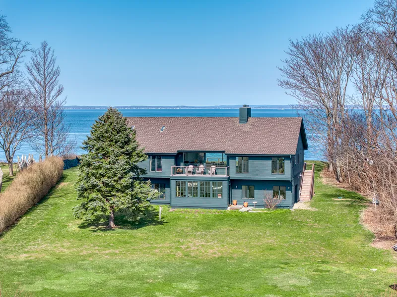 Spacious & immaculate Sound front Contemporary home sitting on a hilltop in Orient, overlooking Long Island Sound to the north & farm fields to the south. Meticulously renovated & professionally designed 4 bedrooms, 5.5 baths with 128 ft of private beach. The ground floor has a large family room with glass doors to a blue stone patio, lawn, & stairs to the beach. This level includes an ensuite bedroom, additional full bath, Malm fire drum, & infra-red sauna. The main floor offers an open floor plan with living/dining/den/kitchen, a 2-sided fireplace, new kitchen, new baths, waterside & farm view decks. A professional ping-pong table, CAC, & outdoor shower are additional amenities. The panoramic Sound and farm views on 1.84 acres offer unique privacy. Offered July 65,000; Aug 75,000. Permit# 1059.