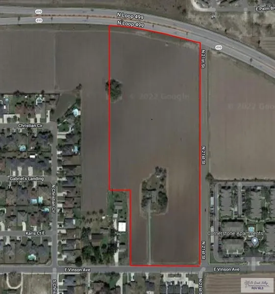 14 ACRES +/- of PRIME DEVELOPMENT PROPERTY!! This property is an amazing opportunity for a developer!! It has THREE STREET FRONTAGE on Loop 499, 21st Street, and Vinson Ave. Some of the nicest, newer subdivisions in town are very close by, and this one could be the next. It is also ideal for Multi-Family or Multi-Purpose Development. All development types are of course subject to City approval and Zoning Restrictions. Harlingen WaterWorks has a 20" main transmission line along the property on Loop 499, as well as 8" main lines running along the south side Vinson and the east side of 21st Streets. The house on the property adds no value. Crops will need to be harvested before development begins.