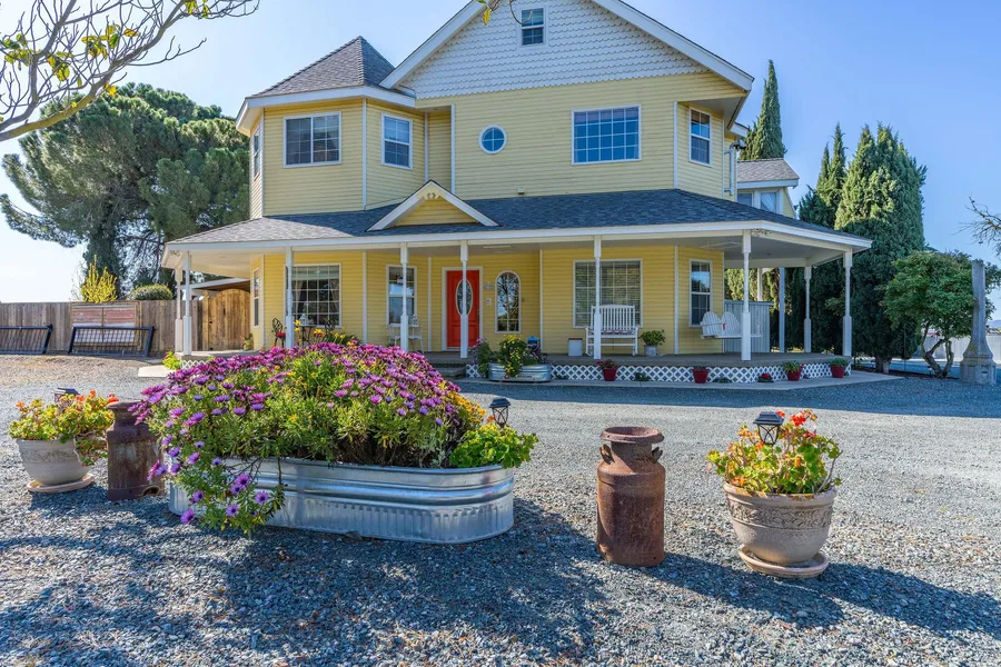 Location, location, location! This idyllic victorian farmhouse is just minutes to the delta where you can launch your boat, fish & enjoy countless restaurants and entertainment the delta has to offer. With over 14 usable acres and fully fenced, this property is ready for its next owner. Downstairs offers plenty of space for entertaining with multiple bonus and game rooms. The second story offers main living with open concept kitchen/living/dining areas and enclosed porch just off the kitchen. The master bedroom with en-suite bath, two guest bedrooms and guest bath are also on the 2nd floor. Approx. 840 sq ft of unfinished space is located on the third floor and is a great place for extra storage, or complete it to suite your needs. A 3-car attached garage and charming fenced backyard offers a gazebo, playhouse, gardens, and patio for lounging. There are a plethora of amenities including covered RV parking and full hook-ups, storage buildings, acres of open fields for animals, and the barn/shop is a dream! With over 6, 000 sq ft, the 2-story barn includes a car lift, office spaces, dedicated storage rooms, and plenty of room to spare. This property has potential to accommodate many different uses. Country living with easy commute back to the city makes this an ideal location to call home!