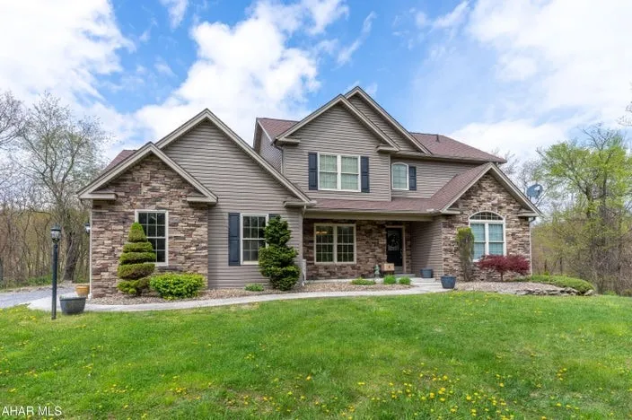 Hollidaysburg Schools. This is indeed a rare find. Beautiful 4 Bedroom, 2.5 Bath home on over 14 acres....plus there is a 2 car attached garage and a 48x36 detached garage for the hobbyist! Great Room boasts hardwood floors, a stone, propane Fire Place for chilly nights and open concept into kitchen...which features Granite Counter Tops, SS appliances and a large island with seating. Rounding out the First floor is a half bath, dining room and spacious Owner's Suite, complete with His and Her walk-in closets and roomy bath. Upstairs you'll find a loft over looking the Great Room....perfect 'flex space' for a home office, Family Room or kids' hang-out. 3 additional bedrooms and a full bath.Downstairs is the walk-out basement, just waiting to be finished...it's already plumbed for a bath! the Outside you'll spend hot Summer days at the pool and covered patio. Dad will be in the barn/garage...