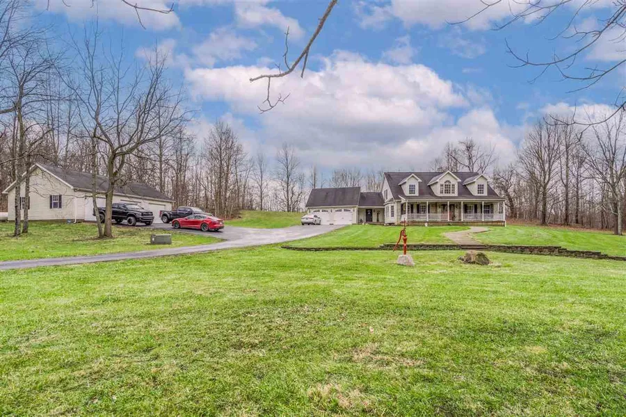 Extraordinary ultra-custom home located on a wooded 14 & acre lot in rural Fayette County that features 4 spacious bedrooms, with main level master suite, and 2 & baths! This home includes a full basement partially finished that would add an additional 1,800 square feet of living space, a custom kitchen with ample storage/large island/and new black stainless steel appliances, living room with vaulted ceiling/wood burning fireplace/and French doors that open to the covered patio/pool, new HVAC system, an in ground swimming pool with new liner/diving board/and slide, attached 2 & car garage, detached 3 car garage that is heated, partially fenced in area that would be ideal for horses/livestock, and so much more! This property truly has everything any buyer could want from the privacy, the pool, the outbuilding, the custom 4 bedroom 2 &1/2 bath home with full basement, and the acreage, it has it all! Visit Fortman Team at fortmanteam.com or on social media for more information on this property.