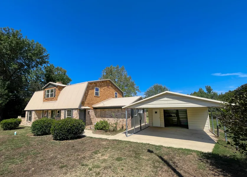 The effortless flow of the home is perfect for large gatherings. A handsome brick fireplace in the living room is a key attribute while French doors open to a dining area adorned with a fantastic fixture. Yet another family room, built in shelving, and a two car metal covered carport w 560 sq. ft. storage room are bonus features!