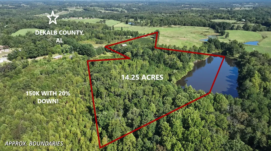 Research Parcel InformationIf coming from Henagar: Head northeast on Weaver Road toward AL-40 E, turn right onto AL-40 E and continue for 7.3 miles. Turn left onto AL-117 N and continue for 2.1 miles, then turn right onto CR 724. Property will be on your right in .3 miles. You should see a dirt drive leading into the property towards the red shop. This trail continues into the back of the property where you'll find the cleared area overlooking the pond.