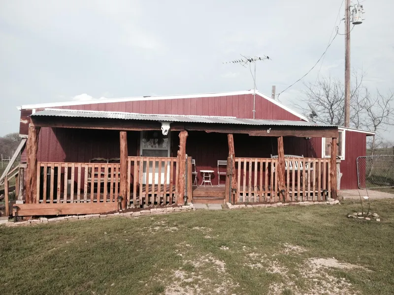 Secluded acres has terrain, trees and creek that runs to the side of the property. Home is a 2 bedroom, 2 bath cabin and comes ready to move in. Working pen for horses, cross fencing and gutters with cistern to catch rain water for plants. Buyer to confirm square feet, this was a travel trailer converted to a cabin.