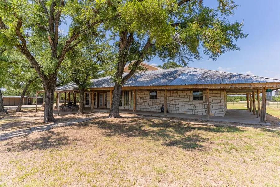 Bring the horses! This beautiful stone home sit on 14 acres of wonderful pasture land. The wrap-around porch welcomes you into this wonderful farm house. The main floor has a large living room with a wood burning stove and tile floors. The kitchen has tile counter tops and a large pantry. The dining room has large windows for a great view of the land. The master bedroom has room for a sitting area and a very large master bath with garden tub and a large walk-in closet. There are 3 other bedrooms on the main floor, one with a private bath. Upstairs you will find a large game room with a mini kitchen and a bathroom. The balcony wraps around the 2nd floor and has a beautiful view of the property. There is a tack/storage building with a chicken coop. The land is fenced and cross fenced. There is also a great stock tank and plenty of tree cover. Year built and square footage taken from tax records, buyer should verify.