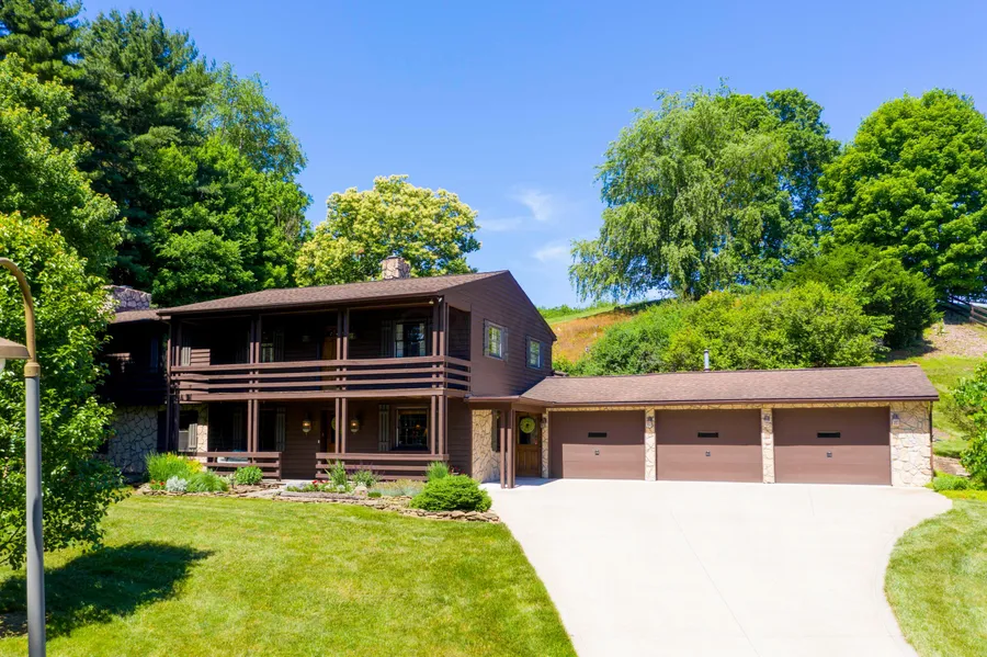 Hidden gem best describes this horse farm. Pull in and you will discover an immaculate park like setting on 14+ acres. Wooded walking, riding, ATV trails, fenced pastures and open fields with beautiful views can be used for many activities. 4 bed, 3 bath home features open concept kitchen/dining, large living room, and beautiful master suite. 2nd, 3 Bed, 2.5 bath home ideal for family or supplemental rental income. Beautiful 8 stall (10x10) horse barn has unique under floor manure conveyor system, large tack rooms, grain room, wash bay, auto waterers, hay storage w/elevator, office and attached 60x120 indoor arena. Separate 3 stall turnout barn. Homes and barn wired and include portable generators. RV/Horse Trailer Storage, Workshop, Maintenance w/ramps and Lawn Storage Buildings.