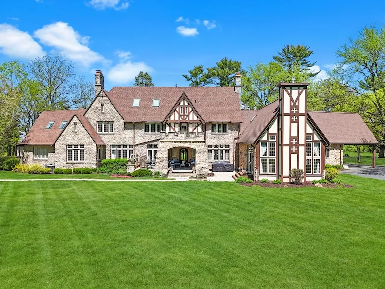 Exquisite Tudor Estate on 14 Acres with Resort-Style Amenities - Step into a fabulous world of timeless elegance and modern luxury with this Stunning Tudor-style estate. This sprawling property is truly one-of-a-kind, offering everything you need for refined living and endless recreation-without ever leaving home. The stately main residence features 6+ bedrooms, main floor master suite, main floor laundry with a dog wash station, and beautiful modern updates that blend seamlessly with the classic architectural finishes you'd expect from this grand era-rich wood details, large windows, and steeply pitched gables. Designed for comfort and entertainment, the estate includes an indoor pool, a baseball area, and a basketball court, as well as a private fitness building complete with its own kitchen and full bath. A second garage with an upper-level apartment offers flexible living or guest q...