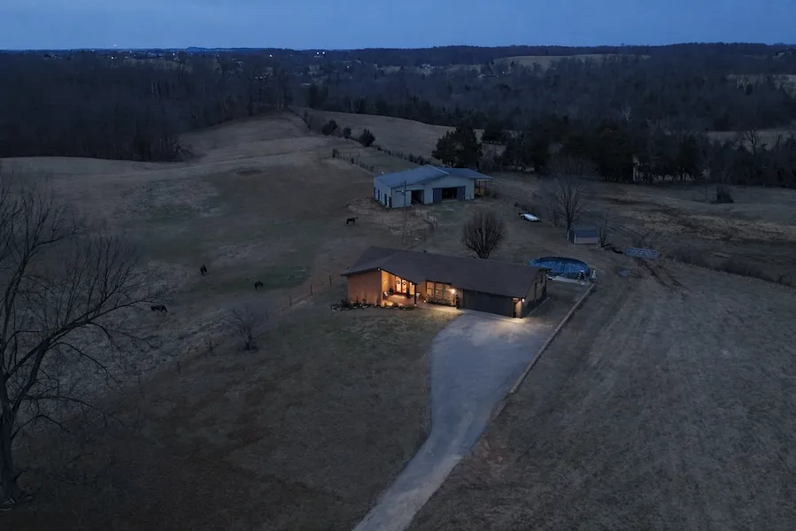 This 14.75-acre property features a newly remodeled one-level brick home and functional farm improvements suitable for livestock, equestrian use, or rural residential living. The home is set back from the road and accessed by a blacktop driveway, offering separation from traffic while maintaining convenient access to nearby town amenities.The residence includes approximately 2,200 square feet of living space and was extensively remodeled in 2024. Updates include interior finishes, fixtures, and improvements throughout the home. A new roof was installed in 2023, and new windows and gutters were added in 2025. The home offers five bedrooms and two updated bathrooms. Two of the bedrooms may be reconfigured into a larger primary suite or an office, depending on the buyer's preference.Interior features include an open living and dining area with exposed wood beams, a vaulted entryway, granite...