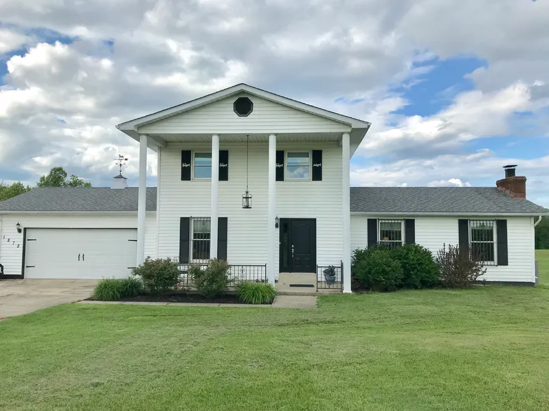This stately 4 bedroom, 2 1/2 bath home sits on 14.84 acres of level to gently rolling land. Enter into the wide foyer and notice the oak hardwood floors and staircase. Turn to the right and the stacked stone woodburning fireplace with rustic mantel and side shelving commands attention in the large family room which overlooks the pond and above ground pool. Continue into the open dining area and look to your left at the kitchen with center island, stainless appliances and lots of cabinet space. The main floor has a bedroom/office and half bath. Upstairs there are 3 bedrooms and a full bath including a large master bedroom with double closets. The finished walkout basement level has a family room, bonus room, full bath and utility room. There is an attached 2 car garage, detached 2 car garage with shed, an outdoor woodburning stove, and 2 storage buildings and an open shed. The home was r...