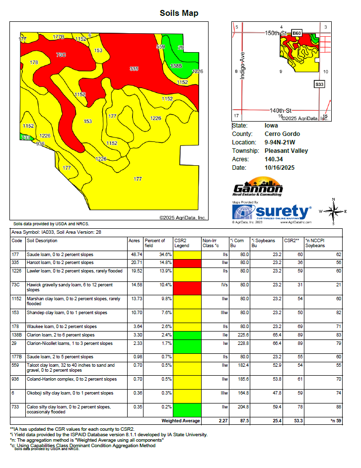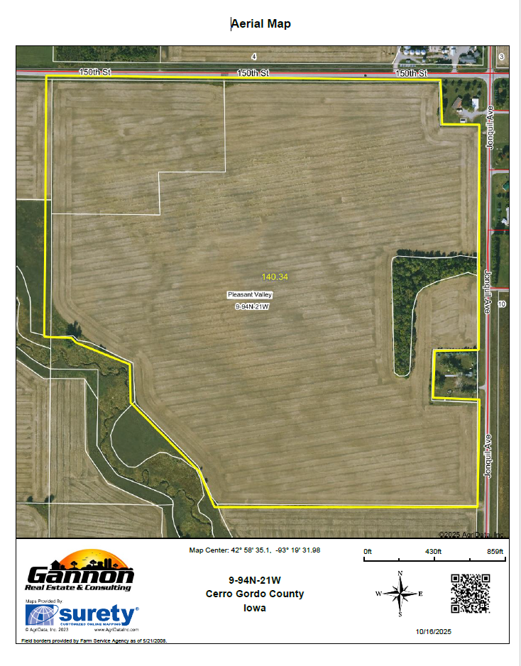 Legal Description: 140.34 acres in the NE 1/4 of 9-94N-21W. Exact legal description will be in the abstract.