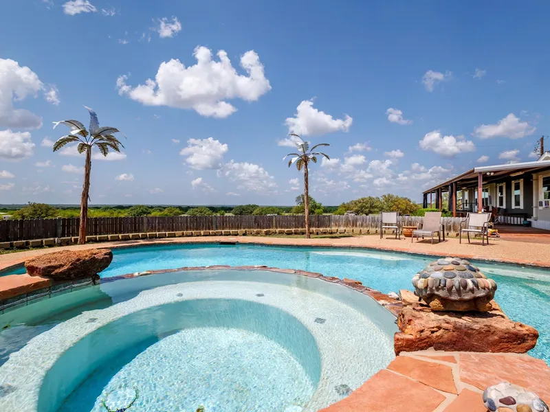 Discover your own slice of paradise with this stunning 15-acre property in the heart of Zephyr, Texas, where breathtaking views, abundant wildlife and tank stocked with Bass, Catfish and Perch await. Nestled in a serene setting, this dream home offers the perfect blend of privacy and comfort, making it an ideal retreat for nature lovers and outdoor enthusiasts alike. The main residence boasts three spacious bedrooms and two full bathrooms, complemented by a dedicated office space and two inviting living rooms, perfect for gatherings or entertaining guests. The home's thoughtful layout maximizes the panoramic views of the rolling terrain, where you can immerse yourself in the beauty of the surrounding landscape. This property is adorned with a remarkable variety of mature oak and pecan trees, providing a picturesque backdrop and ample shade for outdoor activities. Step outside to enjoy the outdoor gunite pool, surrounded by wood fencing for added privacy, making it the perfect spot to relax and unwind. Access to the property is via a gated entry, ensuring security and peace of mind. Two reliable water wells service the estate, and Zephyr water is available for connection if desired. The perimeter is securely fenced with wire fencing. For those who enjoy hunting or need extra space, a hunters cabin is conveniently located on the opposite side of the property, offering a unique getaway. Additionally, you'll find plenty of covered parking for all your toys and equipment, complete with RV hookups for your convenience. This exceptional property in Zephyr, Texas, is a true haven for anyone seeking a tranquil lifestyle surrounded by nature. Dont miss the opportunity to make this dream retreat your own!