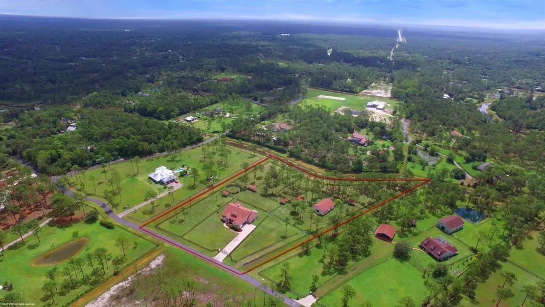 This lovely 3Br/3Bth custom built home is situated on 5.25 acres with 6 stall center-aisle stable, perfect for the equestrians in the family. The home boasts an open floor plan, custom wood cabinetry throughout. The kitchen has granite counters, stainless steel appliances, wall ovens, cook-top and walk-in pantry. The home, stable & storage buildings all have impact windows & doors. Other features include: media room with wet-bar and half-bath, french doors, fireplace, Jacuzzi tub, plantation shutters, cathedral ceilings, bonus room, tiled covered patio & 3 car garage. Additional equestrian features include: 6 large paddocks, four 12' x 24' run-in sheds, round pen, hot walker, 12'x 12' stalls with automatic watering systems and full bath in the stable plus feed & tack rooms. A must see!