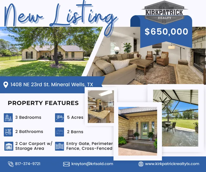 Nestled in a convenient location just minutes from Mineral Wells, this well-maintained property offers a perfect blend of rural charm and modern comfort.
