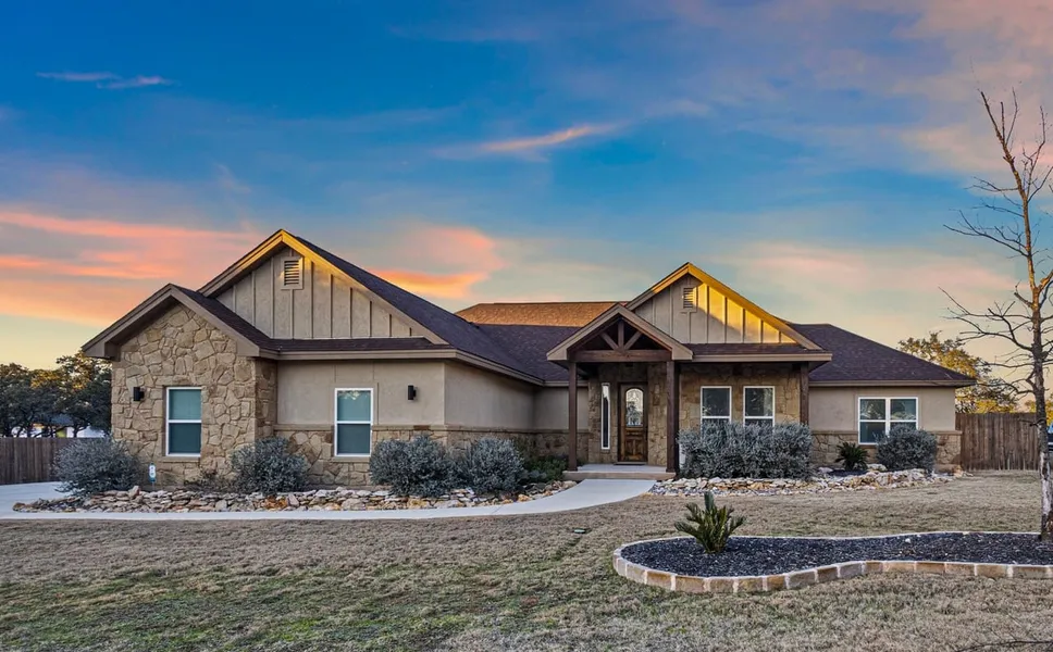 Welcome to The Crossing at Spring Creek, your Hill Country sanctuary in the highly desired area of Spring Branch, TX! This extensively customized 4 Bedroom, 2 Bath, 3,456sf residence is where luxury meets functionality! Inside you will find custom crafted knotty alder wood cabinetry in the kitchen and bathrooms complimented with quartz countertops. Enjoy soft-close cabinets, large walk-in pantry with motion-sensor lighting and stainless steel LG appliances including a French door refrigerator, dishwasher and gas range, all of which convey. The LG washer and dryer as well as Sharp Carousel Microwave situated above the coffee bar also convey. A cathedral ceiling, custom blinds, drapes and a stone fireplace welcome a cozy feel while tile floors throughout the entire house add a sleek touch and keep maintenance minimal. The primary bedroom is complete with plantation shutters, generous l...