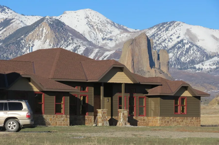 Impressive views from any window in this new home. Excellent 3,322sf floor plan includes 3 bedrooms and 4 baths, office, study, formal dining, great room and family room. Finished 3 car garage with upstairs 1,016sf guest apartment. Secluded location nearly a half mile back off the county road D yet only 5 minutes to Crawford. 142 acres with around 66 irrigated.