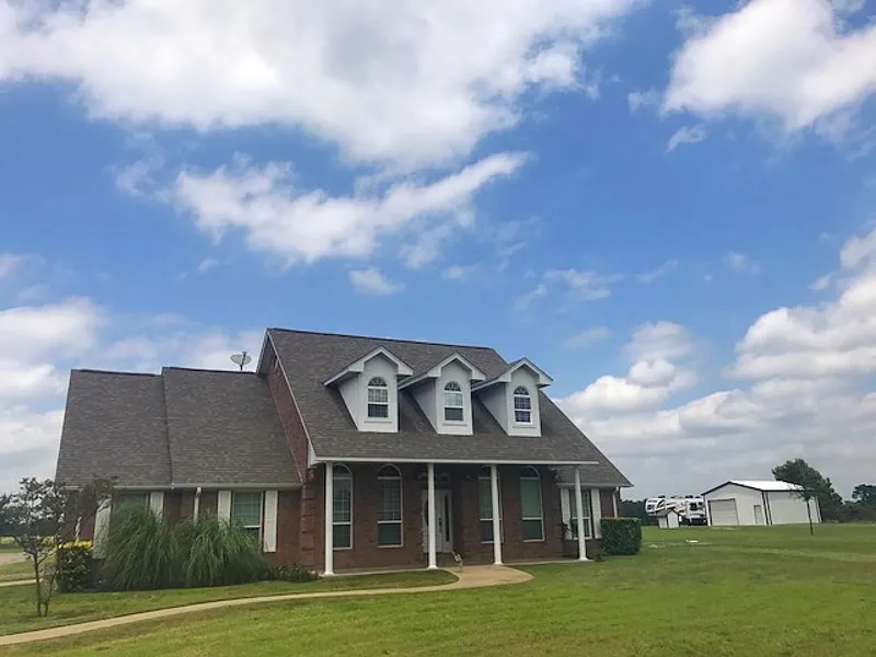 5 bedroom 3 bath home with 2 living areas, formal diningroom, breakfast area, walk-in pantry, game room, all on 3 acres in Eustace ISD.The floor plan offers the master and 2 bedrooms down stairs and the other 2bedrooms and bath upstairs. Very spacious home with 3,812 sqft of heated andcooled space. Granite counter tops, stainless appliances, ceramic wood tileflooring in much of the downstairs and carpet flooring in the bedrooms andupstairs. Circle asphalt drive, 3 car carport, 30 X 30 metal building, Wilcoxwater well, pond, lots of extras. This property is set up perfect for a largefamily as well for entertaining large groups. Just far enough out for the quietnessof the country but still be close to town for convenience.