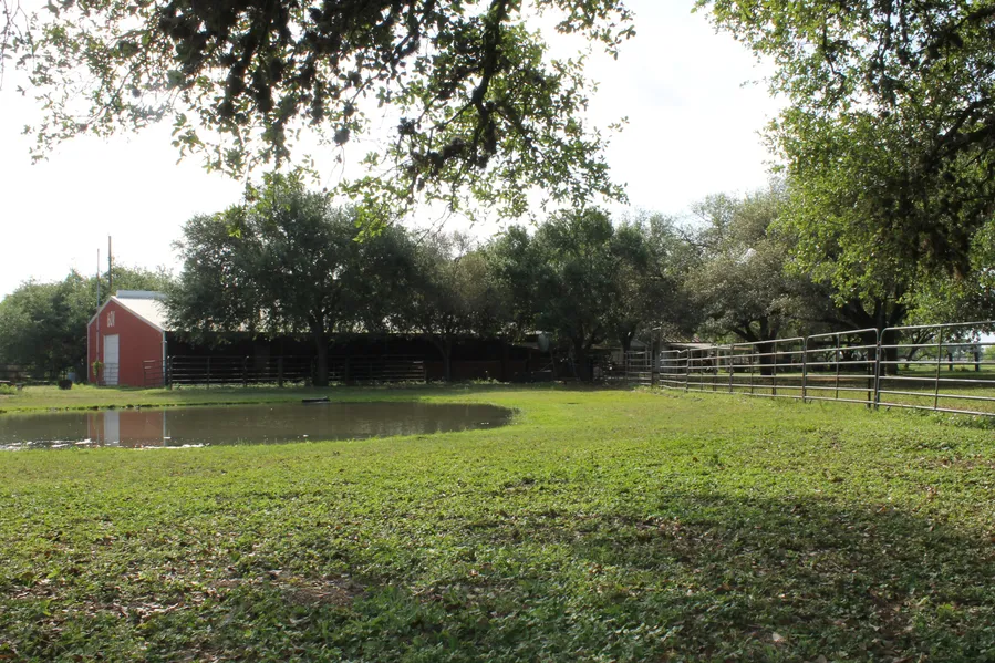 Somewhat of an icon if you will. The locals know it as the old Wayne Hitt Place. A 5 acre working horseman's dream. Perfect for the 4H'er, maybe the person who needs a real man's shop or just a family that loves the country and wants to be in the shade of gigantic ancient old live oaks. This property is in a hidden area that many folks don't know is there. As you drive through the neighborhood, you will see beautiful, large acreage homesites. This area is secluded and quiet, not much traffic. The main home here is a western flavored ranch. A real masonry fireplace and a great back patio. Formal dining room. Outside, the huge heavy duty metal barn is approx 75 x 55. There is an office and a carport attached to the barn. There is a detached old guest house / BBQ party area. It needs TLC depending on how you feel about your guests. 10 ft. deep catfish pond! Not much sells here so come check it out!
