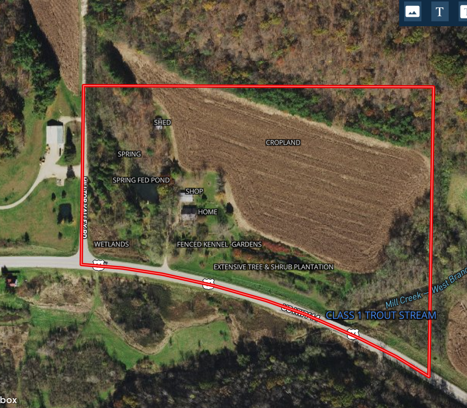 This Country Home w/ Pond and Trout Stream is nestled between Richland Center and Viroqua Wisconsin