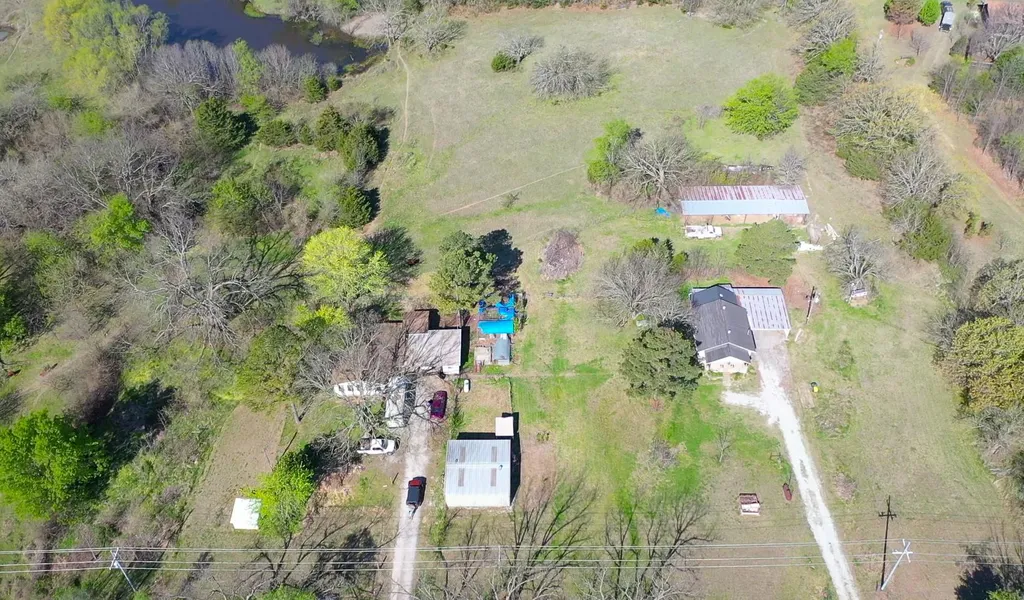 80 acres on paved road (N365) with 2 homes. First house is approx 1418 sq ft mol - 3br/1ba that is currently occupied. 2nd house is approx 1476 sq ft mol that is vacant and in need of some work. Beautiful land. 2 ponds - one is large and has plenty of big fish! Lots of white tail deer, great hunting. Pole barn, Nice 30x40, red steel shop with 220 electric. 2 water wells. Lots of clear land with phase 3 running across property - buyer to verfiy. Rural water available. PEC electric, Septic. Water wells are 20' and 150' deep. Dry cellar, old corrals and chute.