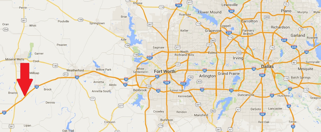 LOCATION:Approximately 45 miles west of Fort Worth or 20 miles west of Weatherford via IH-20. The main entrance is on the north IH-20 access road and other multiple access points are on Soda Springs Road.