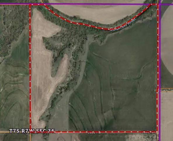 Legal Description: Northeast Quarter lying south of the Solomon River of Section 36, Township 7 South, Range 7 West of the 6th PM, Mitchell County, KS.