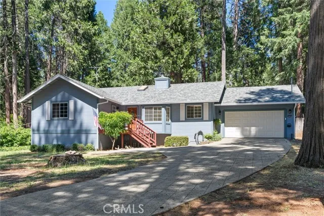 BEAUTIFUL SETTING on a large lot in Magalia! Sitting back off the street amongst the trees, this adorable well maintained 3 bedroom and 2 bath home has many custom and updated features you will love. Enter the home through a beautiful solid oak door onto hardwood flooring that opens up to a spacious living room featuring vaulted ceilings, ceiling fan, window and skylight, blinds and a custom brick hearth with a wood burning stove for those cozy winter evenings. The kitchen area has 3 dining possibilities. First dining area features a bay window with built-in seating & storage below, second has an area for a larger table with backyard view. The breakfast bar has custom-built cabinets with a 4-door pantry and shelves at each end. Kitchen boasts Granite counters and stainless steel appliances with refrigerator.