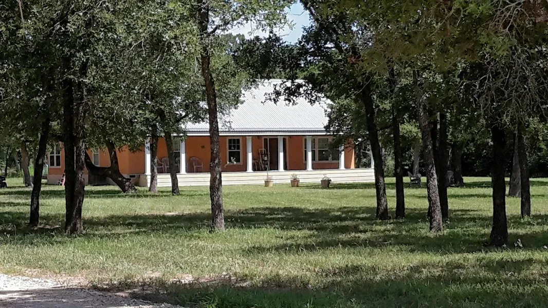 Property has two distinct features: Trees are trimmed to give a manicured, parklike appearance in front of home with large and small pond . Back of home was left wooded for wild life, trails in place for ATV riding, walking or hunting. The 2,497 sq ft stucco home is nestled in the post oak trees midway into the property for privacy from the road, still leaving ample room for outdoor activities in the back of the property.