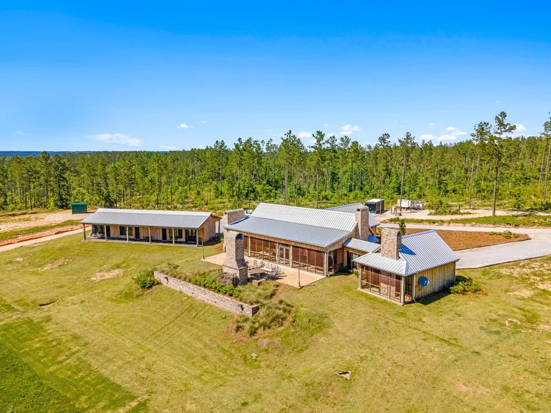 Executive Residential / Wildlife / Hunting Resort located in the piney woods of South Mississippi. This is an 898.6 acre paradise that has been high fenced with keypad gated entry that offers solitude, security, peace and quiet away from all the worlds problems today. Just close the gate behind you and enter your own paradise to relax and escape into your own world. This property has more amenities than can be listed. There are 3 main living structures with a total of 6,800 sq ft under beam plus a commercial metal building used as a shop and storage area measuring 5,425 square feet. The 898.6 acres has been high fenced aprox 10 years and managed for timber production and wildlife including whitetail deer, axis deer, blackbuck antelope and fallow deer. The property is predominately pine plantation ranging in age from 12 to 30 years old with mostly mixed stands of pine and hardwood along the several spring fed streams on the property that run year round. The interior road system is good with all weather access and there is a pond on the property aprox 2 acres in size. There are numerous improved pasture areas used for food plots and wildlife habitat with elevated deer stands for hunting or viewing wildlife. The improvements on the property were built in 2018 and are in immaculate condition today and include the following: The Main Custom Built Lodge with over 3,044 feet under beam features a custom built kitchen that has a large granite top work island w/ sink, the cabinet countertops are Monte Blanc Quartzite, a Thermador 6 burner gas stove with double ovens, refrigerator freezer, dishwasher, stainless sink, refrigerated drawers under the cabinets, microwave, an open floor plan to the living area with ceramic tile floors, exposed wood beams on cathedral ceilings with wood ceilings and walls. A long hallway leading to a master bedroom with its own custom built gas fireplace, remote controlled tv that extends down from ceiling, a large master bathroom with a walk in shower, his & her closets. Walk out the French doors to the 12 x56 screened in back porch that features an outdoor cooking area that will blow you away including, a custom built brick grilling area that also has a smoker and warming racks, custom cabinets with concrete countertops, stainless sink, under the cabinet refrigerated trays, beverage cooler, ice maker, and a countertop built in Wolf deep fryer, ceiling fans, storm shutters and a remote controlled flip down TV for viewing outdoors. Then you walk out back to a custom built patio that has its own outdoor fireplace. The detached 2,200 square foot bedroom facility features stained cement floors, ceiling fans, storm shutters, 3 large bedrooms, 3 large bathrooms with sliding barn doors, walk in showers, a large wash room with washer, dryer, under cabinet beverage cooler, built in gun racks, porches on front and back of bedrooms with access to both from inside. The Lodge and Bedroom Facility have their own 80 KW back up generator capable of powering the whole facility. Need more room, there is a new custom 16 X 80 mobile home with an attached 12 x 26 screened in front porch w/ ceiling fans. There are 3 bedrooms, 2 bathrooms, vinyl floors, brand new fully furnished, everything top of the line and has its own back up diesel generator. The 51 X 100 foot shop has cement floors, industrial fan, 6 electric roll up doors, hose reels, bathroom, walk in deer cooler, skinning rack, custom lighting, and plenty of room for storage and maintenance.