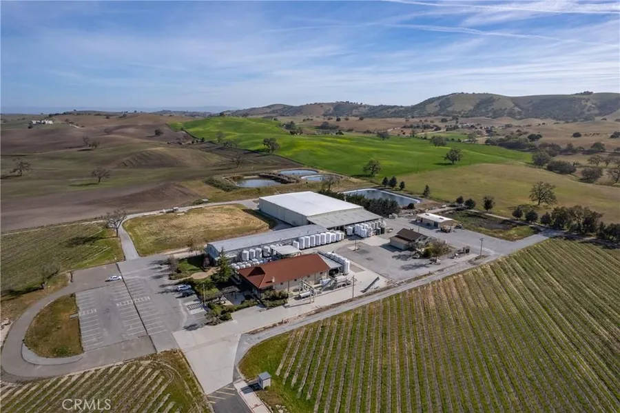 A high-capacity ultra-premium, legacy winemaking campus equipped for crush, fermentation, storage, and barrel aging in the heart of Central Coast wine country, near Highway 101. Home to a 44 acre vineyard primarily planted with Cabernet Sauvignon and onsite tasting room, the 64 acre Templeton property has a crush capacity in the range of 250,000-500,000 cases annually. Located in the Atascadero Groundwater Basin, the property isn't subject to the restrictions of Paso Robles Groundwater Basin. The ponds support up to 1,700,000 gallons of wine production annually. Five support buildings totaling 48,600 sq. ft. make the facility an especially attractive asset. Specifically: a 27,500 sq. ft. warehouse with drains and space for 8,000+ barrel storage (695k gallon cooperage). Generous equipment/storage space, flexible array of stainless steel tanks (138 tanks with 701,959 gallons) shipping and receiving docs, an open-top fermentation building, lab, and administrative offices. Winery equipment included; a Diemme260 and Europress along with a flexible array of large and small-lot stainless steel fermentation and storage tanks, with fermentation capacity of 1,050 tons per turn. A valuable addition to any portfolio aimed to maximize consistent earnings, this Winery facility offers an ideal blend of assets. Potential for seller financing for qualified buyers.
