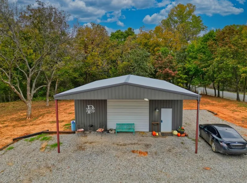 10 acres with lots of trees, a creek and a charming Barndominium. This studio like barndo offers a downstairs sleeping space as well as a loft, complete kitchen and one full bathroom. With room to adjust the living space to fit your needs this is a lovely cozy space. The property offers plenty of room to enjoy nature and observe wildlife while not being too far from highway access. Located 15 minutes from Purcell the quiet rural area is sure to impress. This is the perfect start to your barno home!