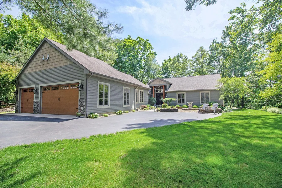 14770 Trillium Drive is located in the Stony Lake Hills neighborhood with only 8 other lakefront owners. This home sits up high on a ridge with stunning westerly panoramic waterfront views. Many recent upgrades including a newer furnace, hot water heater, water softener, stainless appliances, new Anderson windows, front door, new roof in 2018, updated master bath, paint & siding, granite countertops, extensive composite decking with gazebos and more. The 4 bed & 3.5 bath home includes a master bedroom suite, walk-in closet & fireplace. Enjoy the cozy living room with endless waterfront views, stone faced fireplace, Oak hardwood floors and sliding glass doors leading out to the expansive wrap-around deck. The lower level walkout has 1569 sq. ft finished with a rec-room, full bath, laundry room and ample storage areas. The home is equipped with a back-up generator, security system, 3 car attached garage, 24x32 pole barn & a 14x16 wood storage shed. This 3.8-acre lot has 430 feet of lake frontage. The lake is approximately 65 acres in size and offers excellent recreational activities with depths up to 27 feet. The lake is stocked with Perch, Pike, Bass, Crappie and Bluegill.